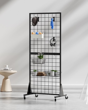 Painéis de parede grade Non-Folding modernos com rodas travadas Material de aço carbono para artesanato Merchandise Display e armazenamento